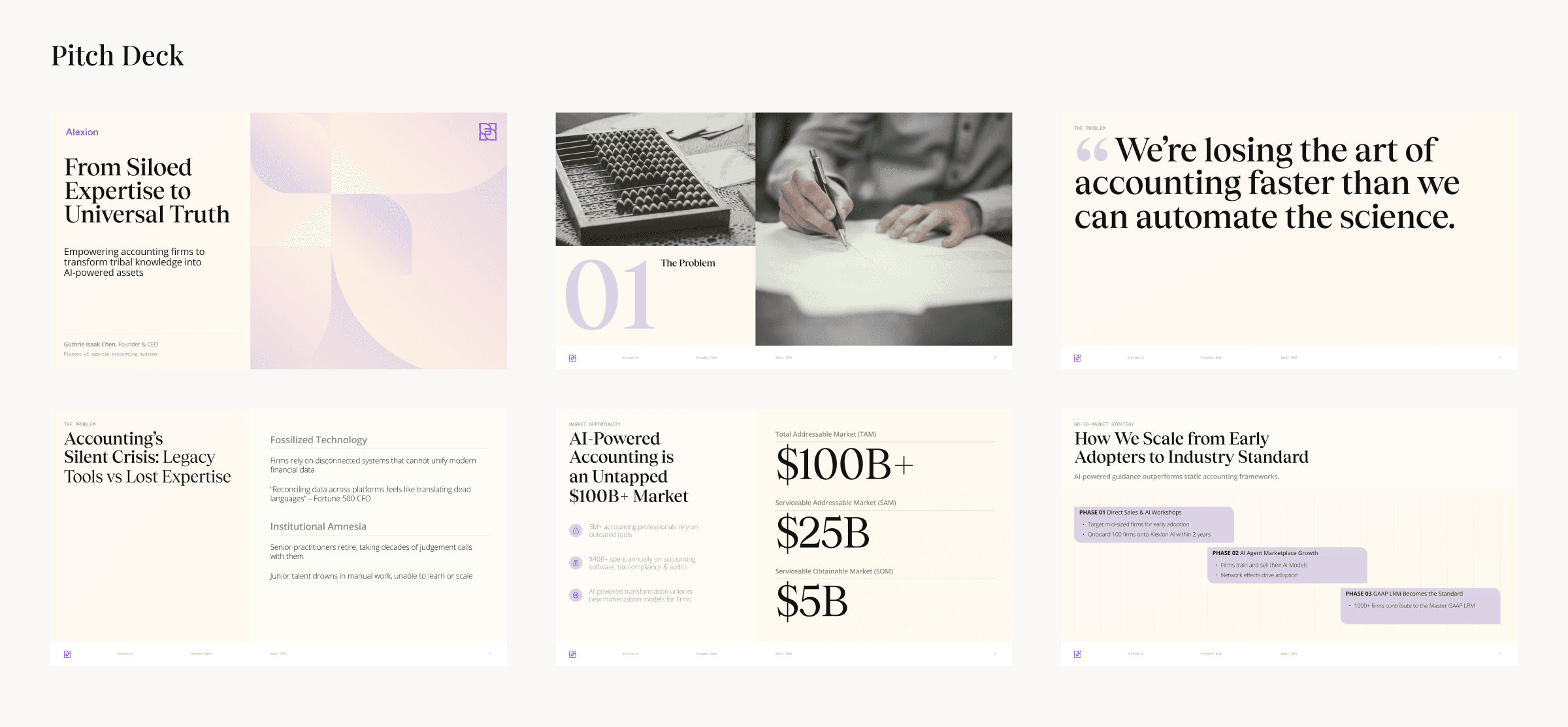 Working with external vendors, I guided the development of a working set of brand guidelines and subsequent application of that brand for our investor pitch deck.