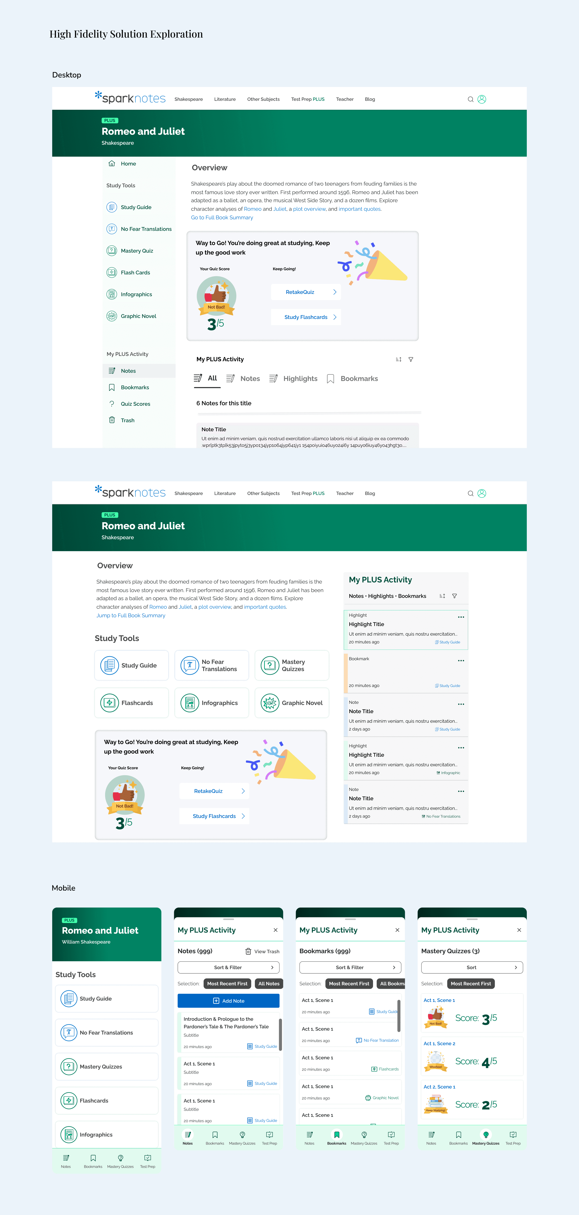 Using the data from my research conclusions I created high fidelity designs to explore some potential solutions including: