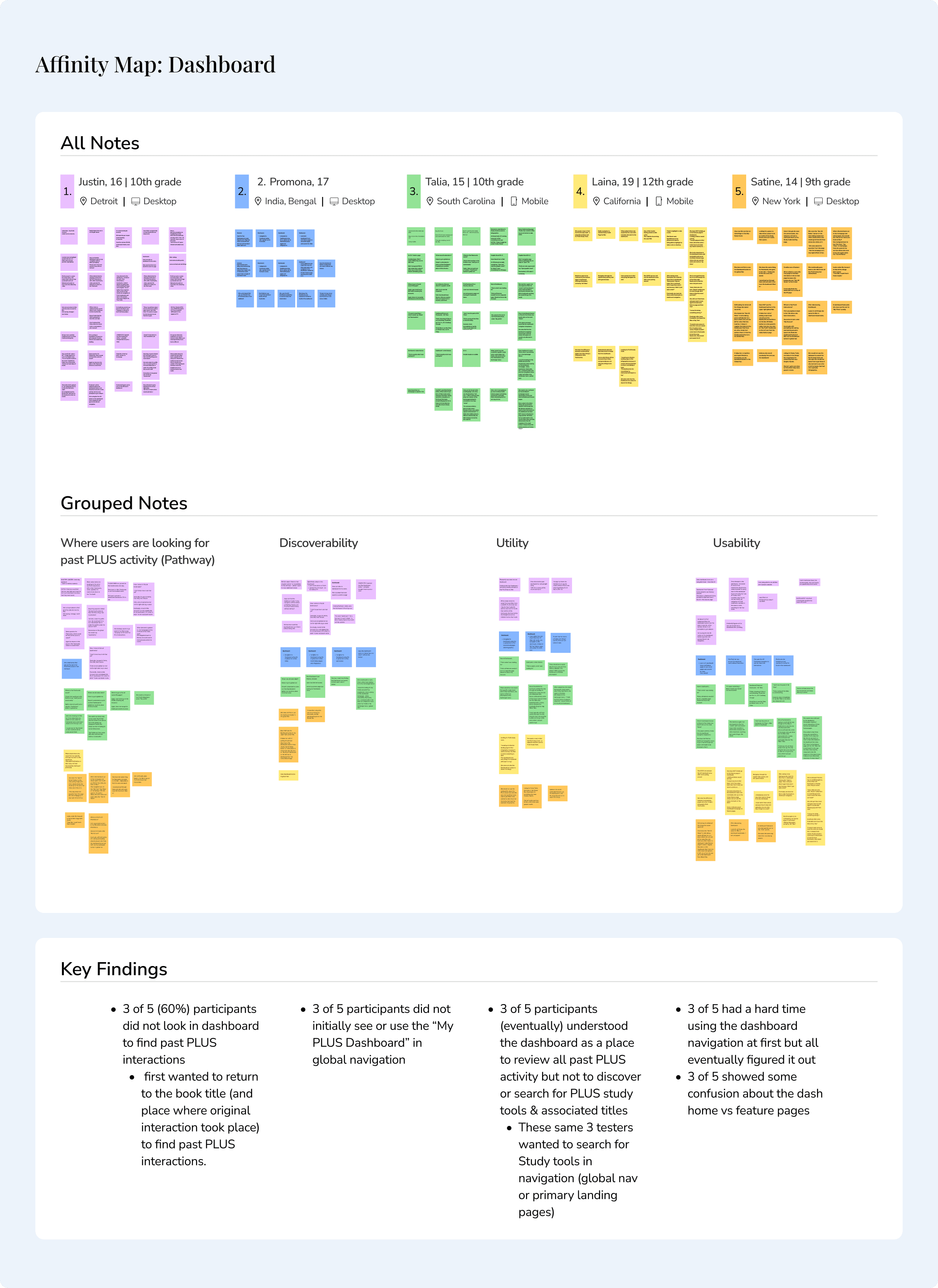 Users were not inclined to find and use the dashboard without prompting. Instead users were navigating back to individual book titles to see their PLUS activity instead of using the dashboard.